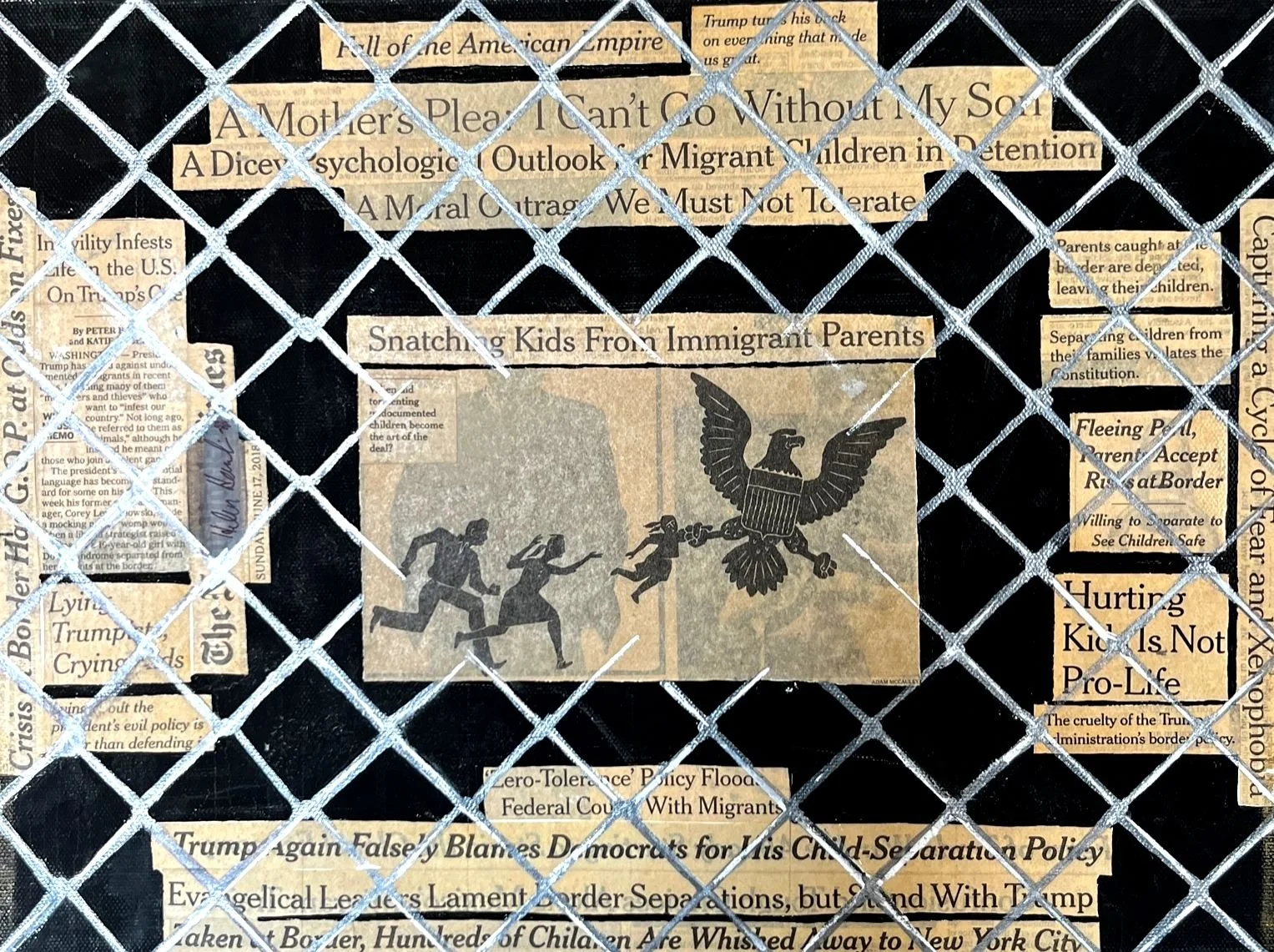 This week’s collage captures the horror of the U.S. family separation policy, spotlighting the national symbol, the bald eagle, as complicit in cruelty and the collective numbness of those who allowed and justified it.
